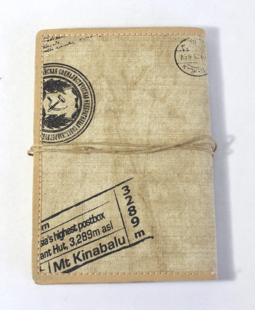 Soft cover antique canvas notebook with 48 sheets / 96 pages of handmade recycled cotton papers. Multi color bird being screen printed on the cotton antique finished canvas along with some old fashioned postal chops & stamps from various parts of the world, giving it a travel look. Can be a lovely travel journal as well as personal or corporate gift after some branding or given details / specifications.