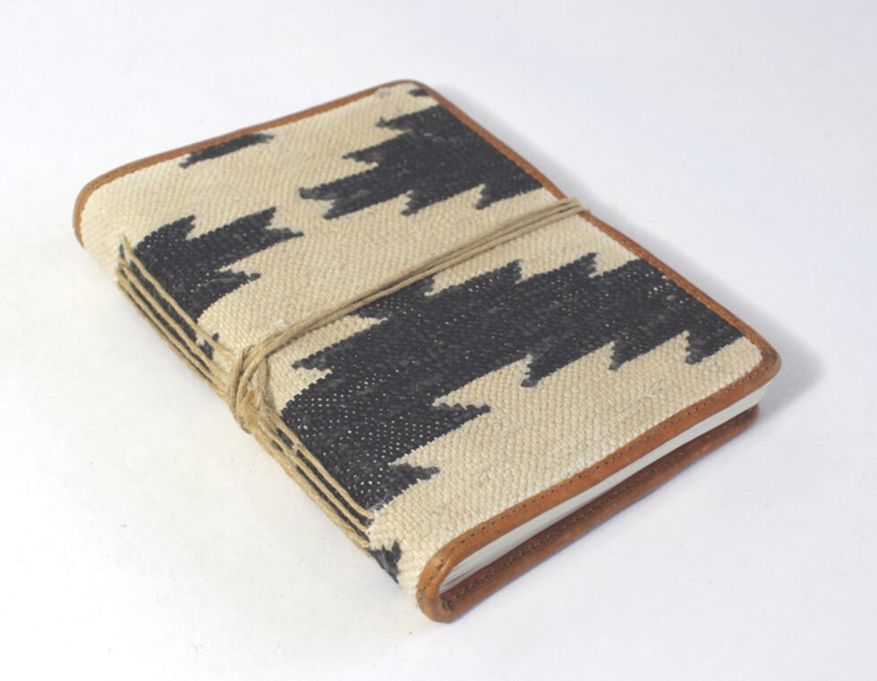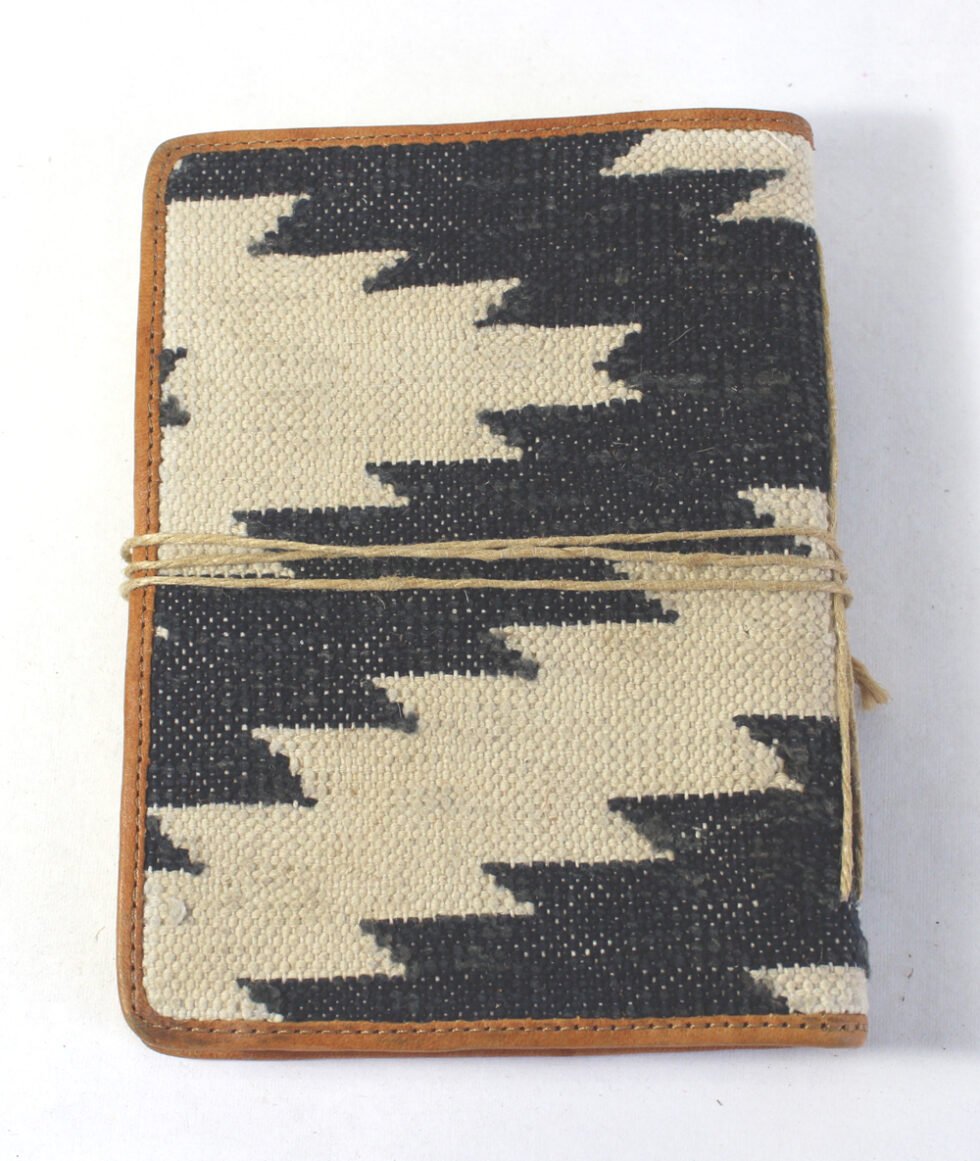 Soft cover cotton rug cover notebook with 72 sheets / 144 pages of handmade recycled cotton papers. Nicely hand woven cotton dhurry being hand crafted and cleverly used in a hand bound notebook / journal by specialist artisans. Can be a lovely travel journal as well as personal or corporate gift after some branding or given details / specifications.