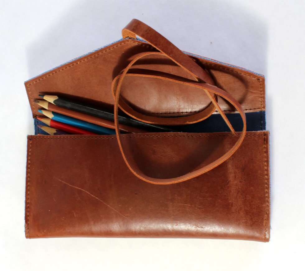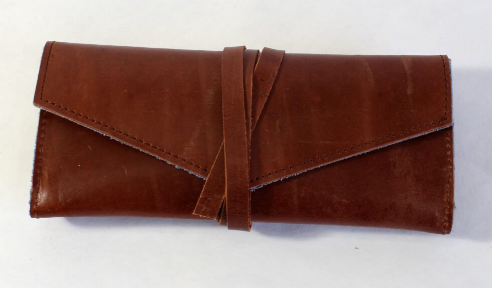 Soft & Supple Brown Genuine Buffalo Leather pencil case.