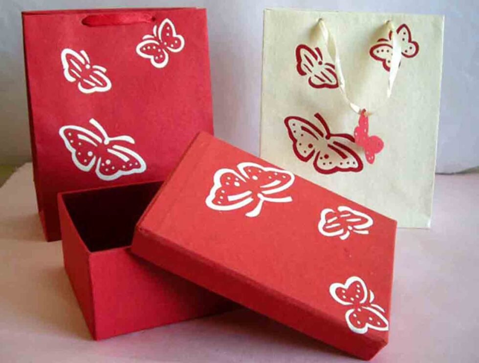 Solid box made of card board and recycled die cut paper in rectangle shape for gifts and Christmas packaging