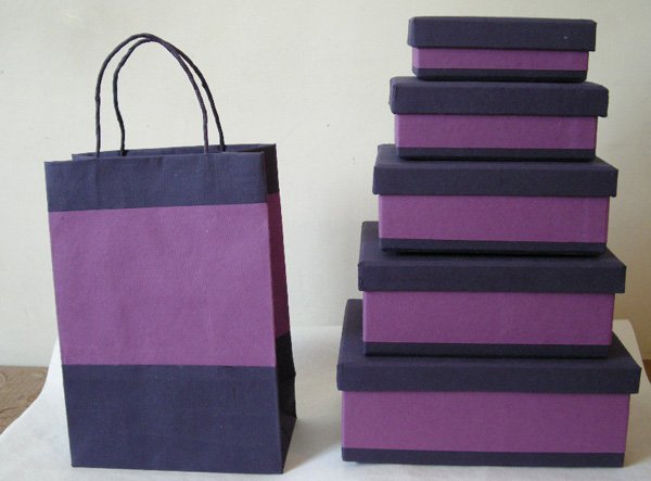 Solid boxes made of card board and plain cotton recycled paper in rectangle shape for gifts and Christmas packaging. Comes in different sizes as sets – nested into each other.