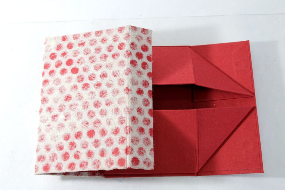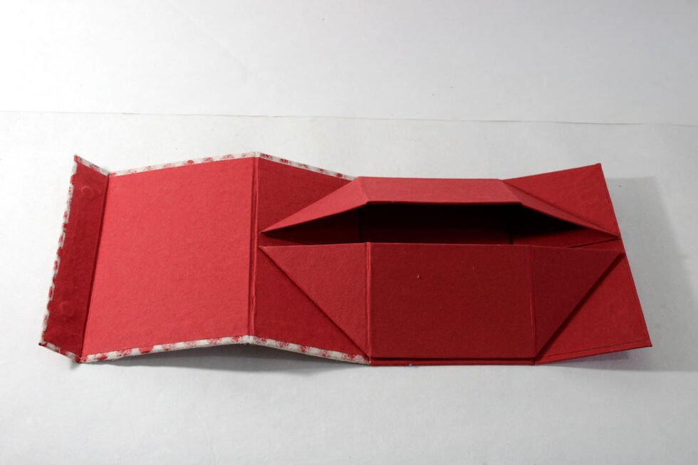Solid & sturdy collapsible box with magnetic closures. A wonder full solution to the transportation & storage of solid boxes. The boxes come absolutely flat like a notebook and you do not need to ‘nest different sizes’ into each other! Box is made of cardboard, recycled handmade cotton paper decorated with lace paper on its top!