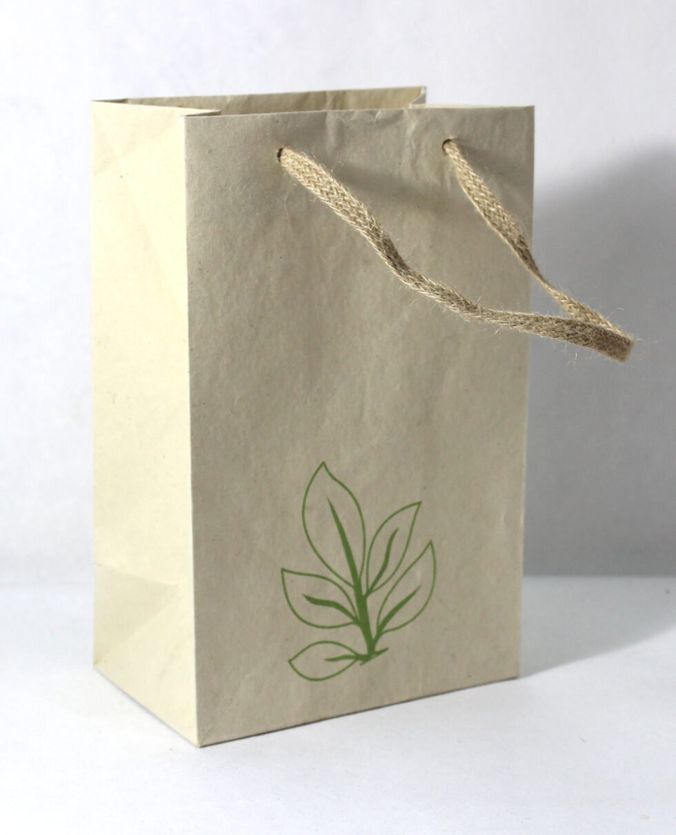 Strong and sturdy hemp paper bag with jute ribbon handles bag