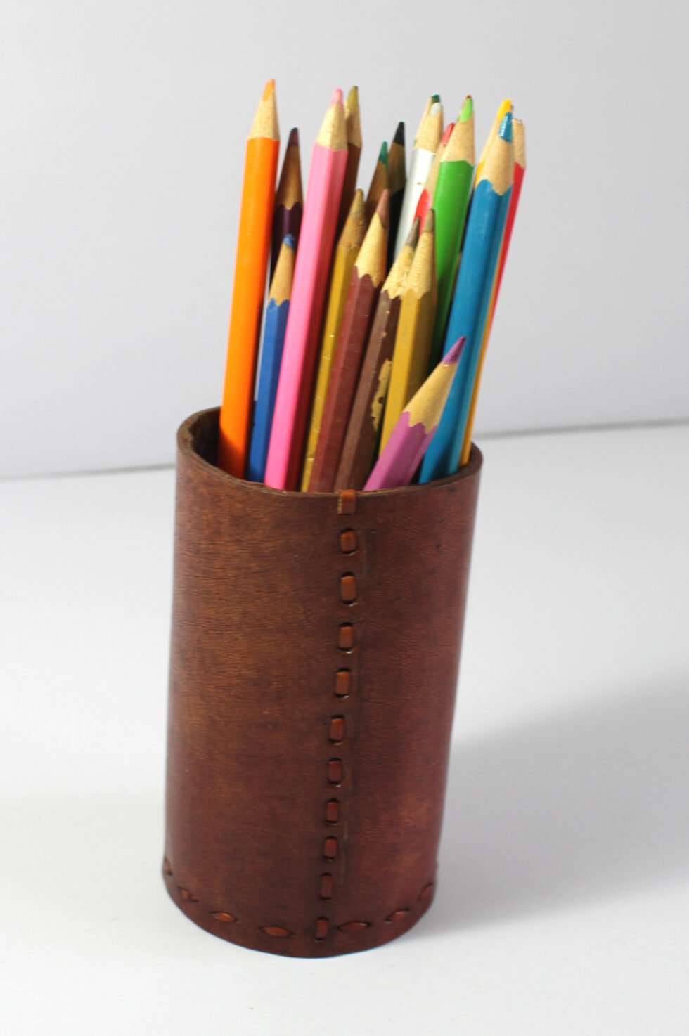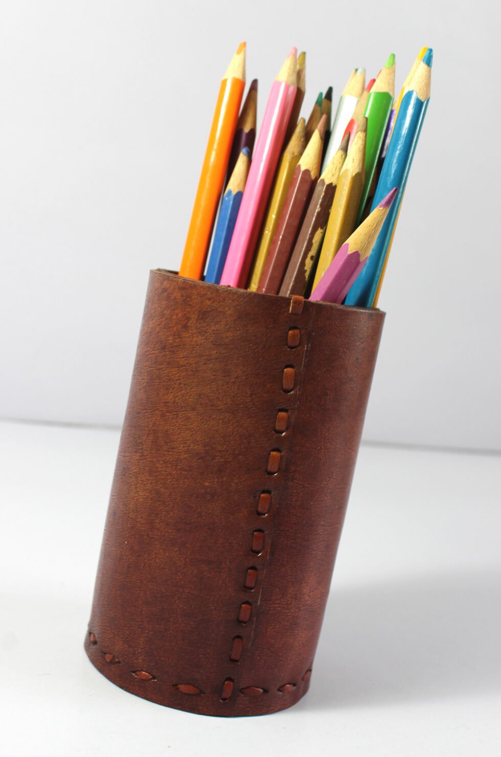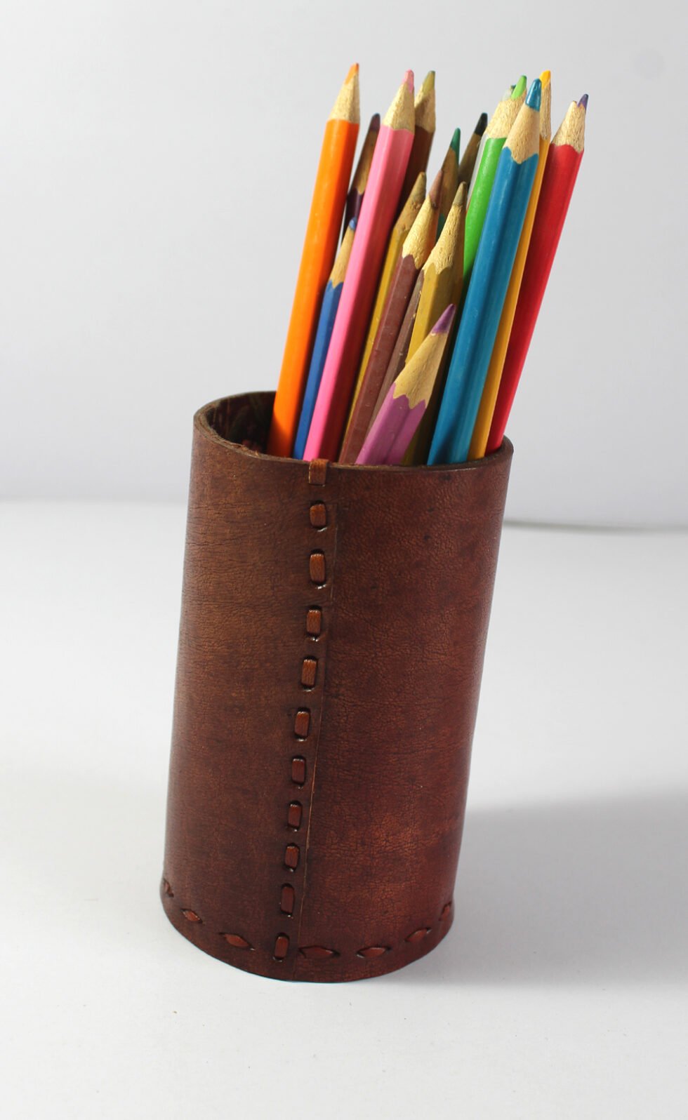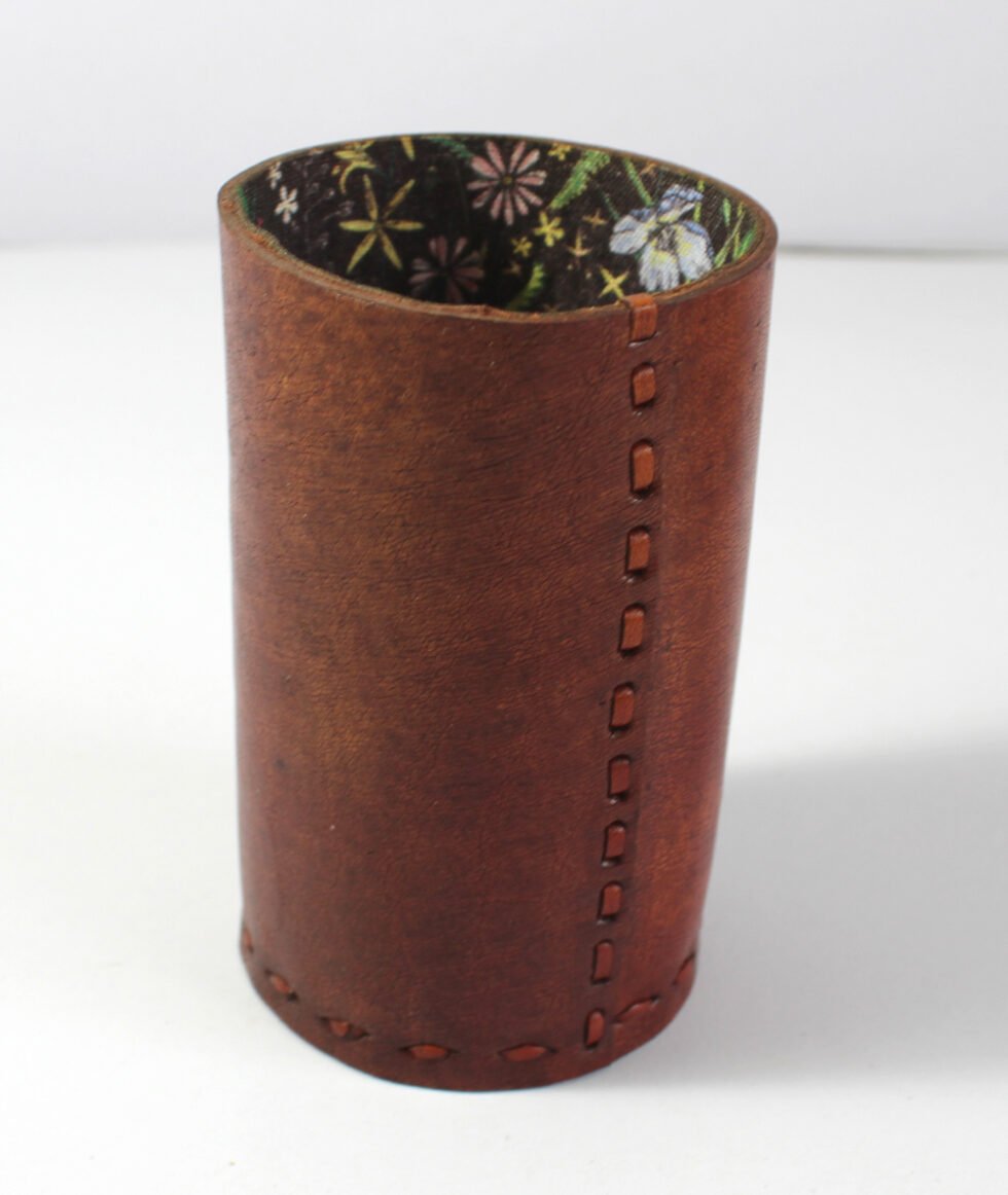 Strong natural leather + 100% handmade – guarantee of a quality product! Terracotta leather first dyed by the application of pigments carried through water on the smoother side of the leather. It is 100% full grain leather, while the polishing effect gives the product slightly stiff yet a glamorous shine! A very useful, aesthetic and beautiful present or product as pen stand, a kind of corporate gift! Leather with the love of labour and craftsmanship unlike conventional tannery dyed leather!