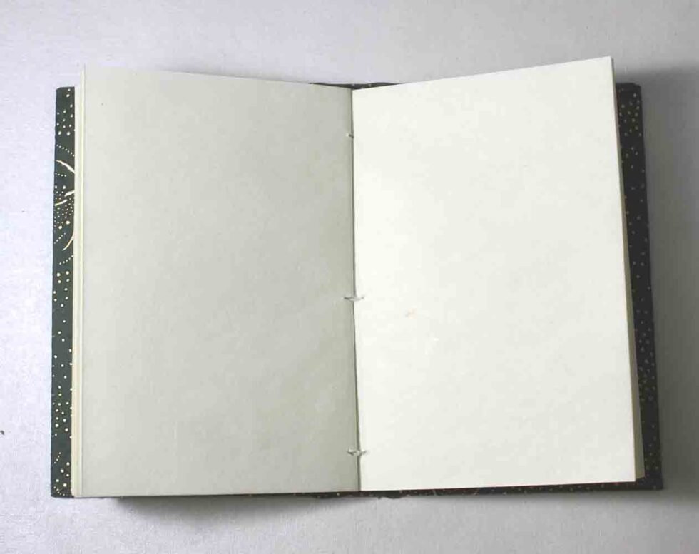 Handcrafted notebook with a recycled handmade paper cover. Contains 48 sheets (96 pages) of smooth, wood-free, acid-free cream paper — perfect for ink or fountain pens. A beautiful, eco-friendly gift for any occasion.