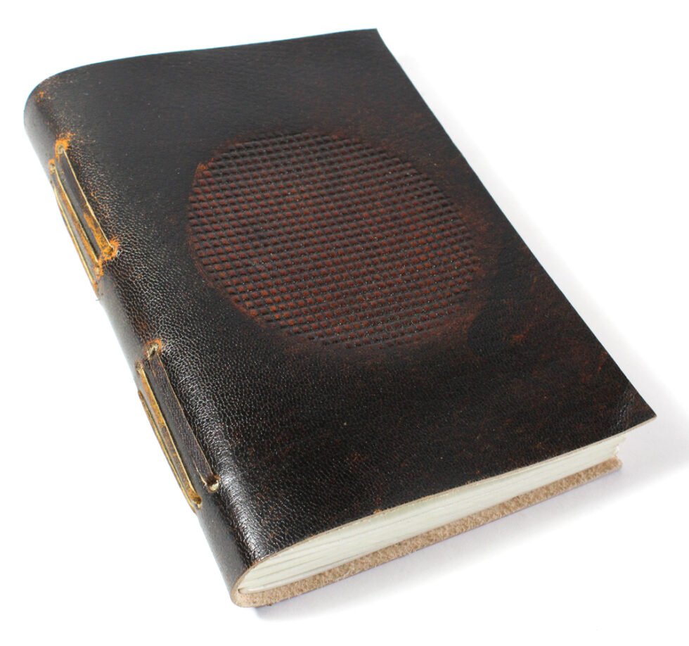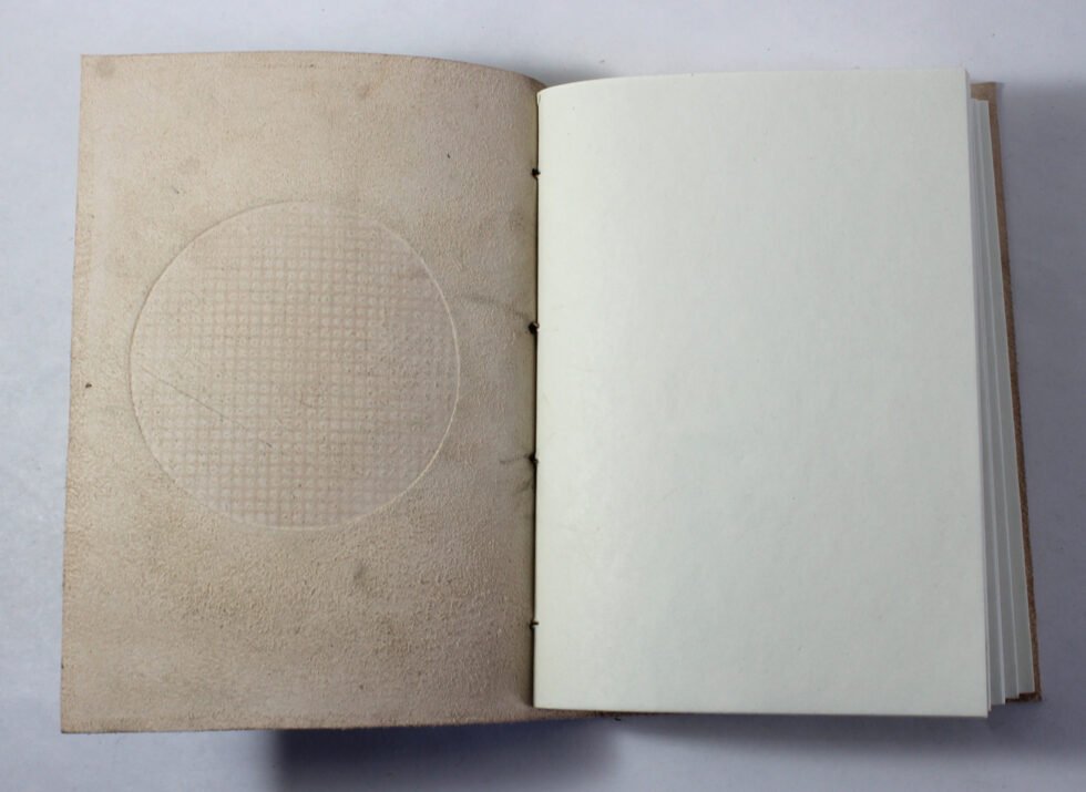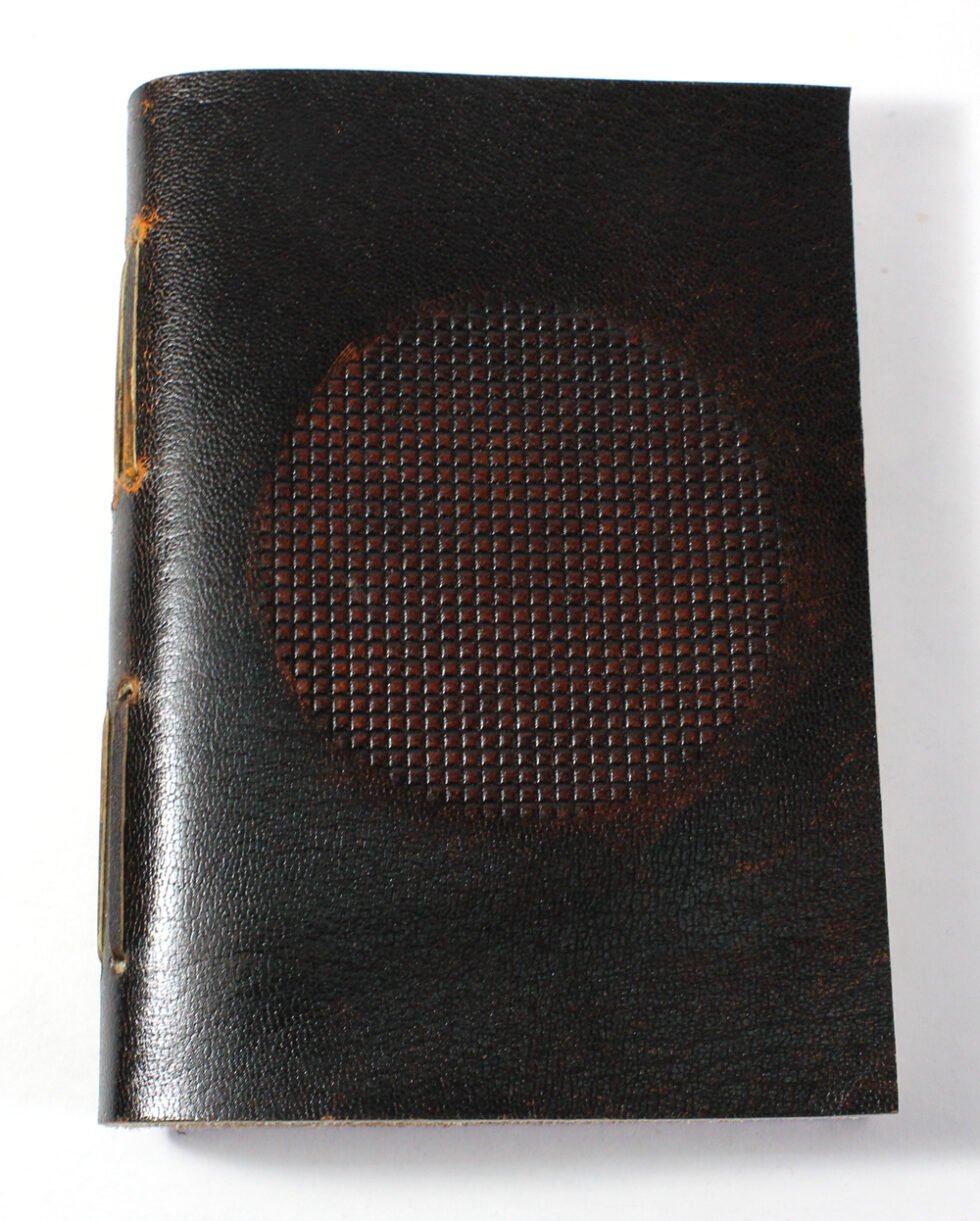 TC goat leather journal. Hard bound with 80 sheets / 160 pages cotton recycled handmade paper, which is acid free / wood free. A truly wonderful smooth paper to write upon and never bleeds with the ink. On the cover, tiny checks are embossed in circle form.