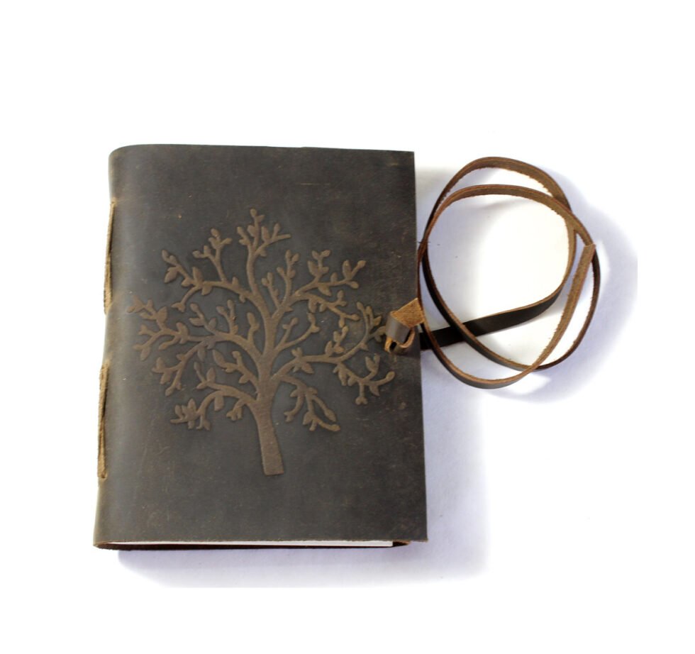 ‘Tree of life’ design embossed on the front cover brown genuine buffalo leather journal