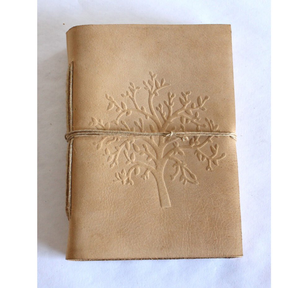 ‘Tree of life’ design embossed on the front cover leather journal