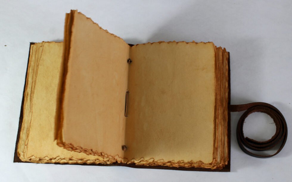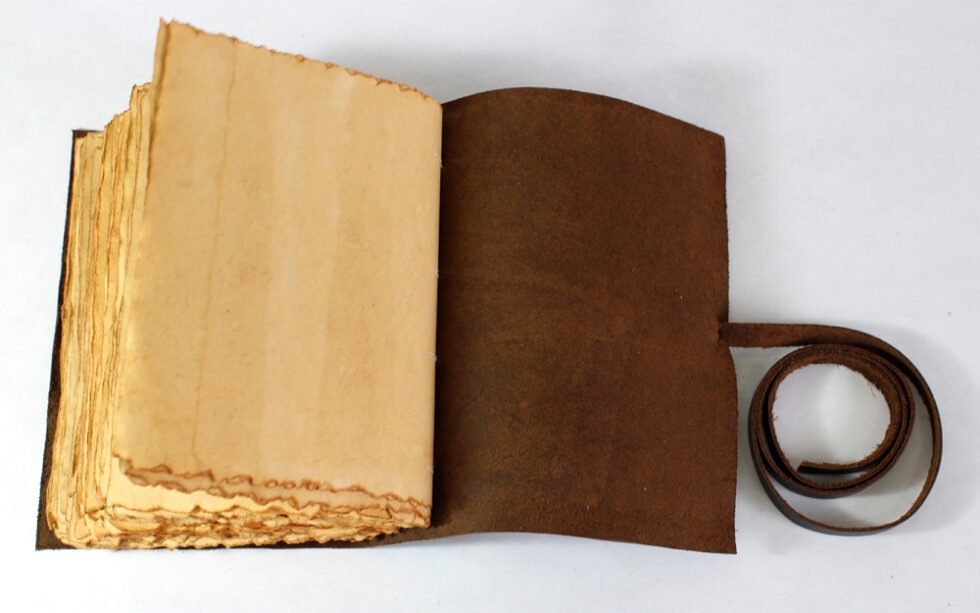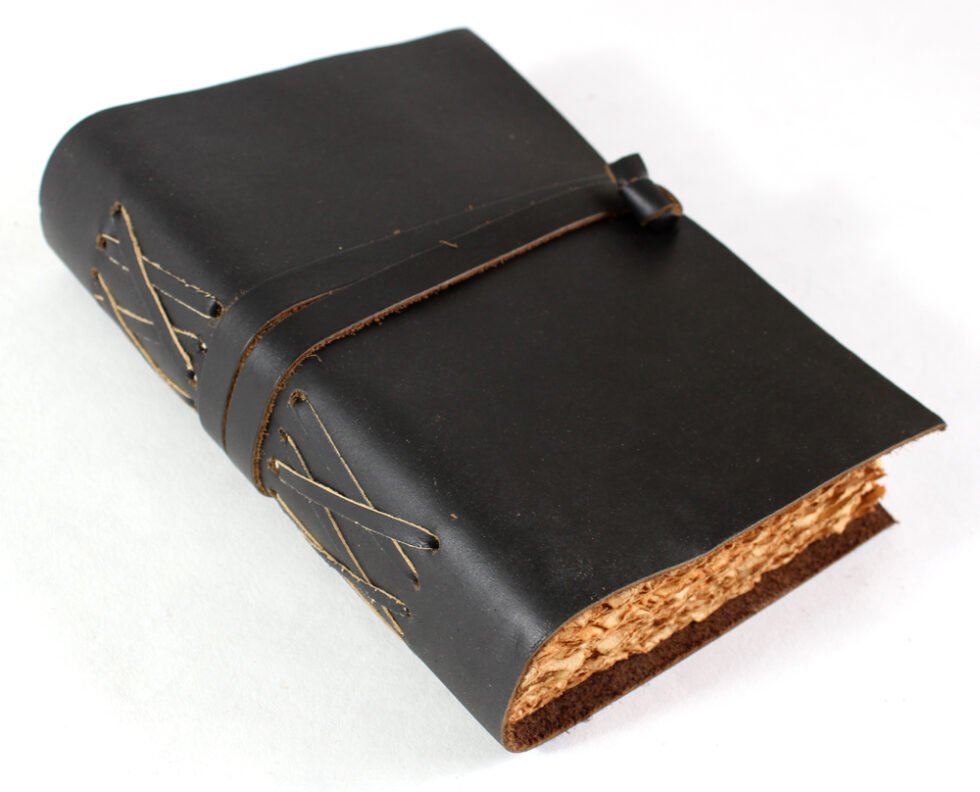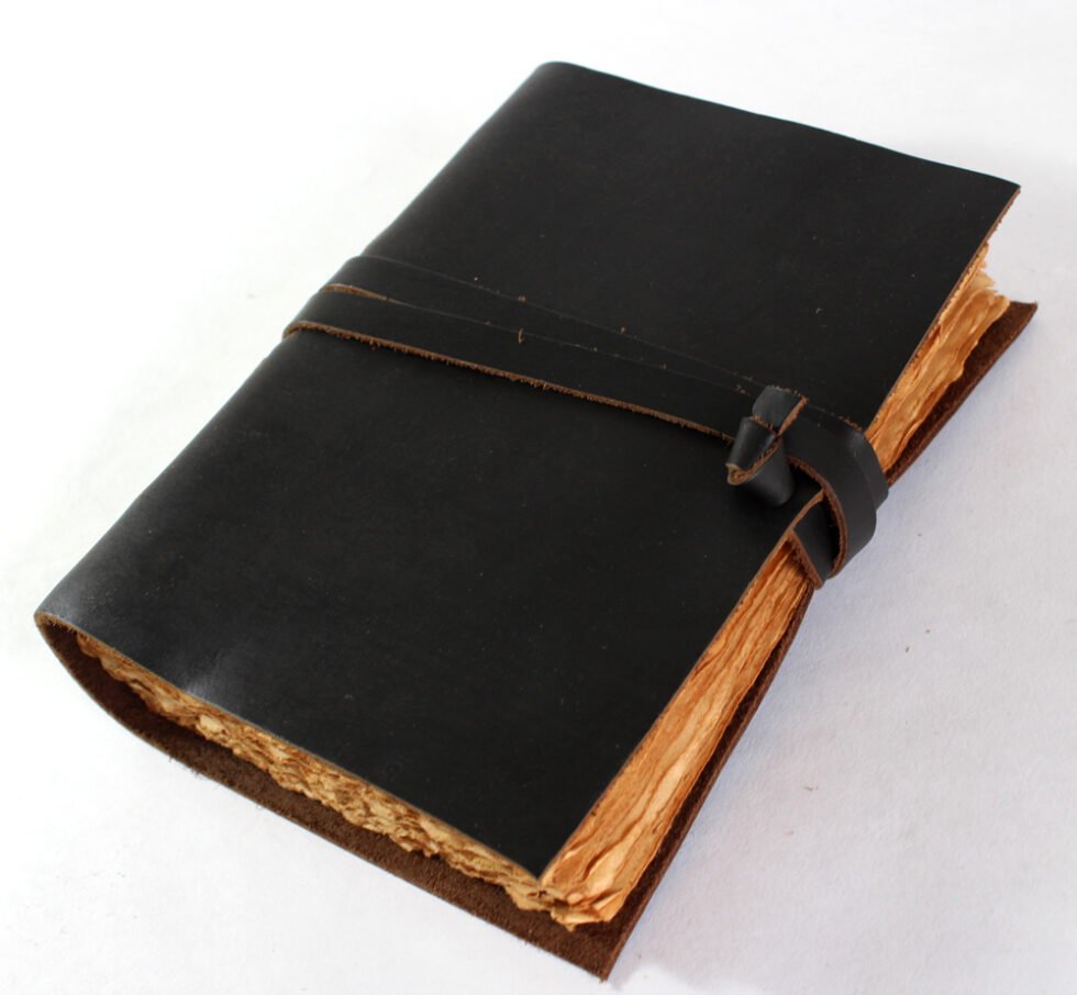 Made from premium buffalo leather, with a wonderful smell, its soft feeling and delicate, yet super tough. Rustic charm with decorative leather strings’ stitching on the spine adds antique magic to this lovely vintage journal. Front cover is plain with an ethnic touch. Draw, write and sketch to your heart’s content on the 120 vintage looking natural edged blank unlined sheets (or 240 pages) of recycled cotton handmade paper. Paper is wood free, acid free and does not bleed with the ink pen! A perfect present for men, women, students, travelers of all age!