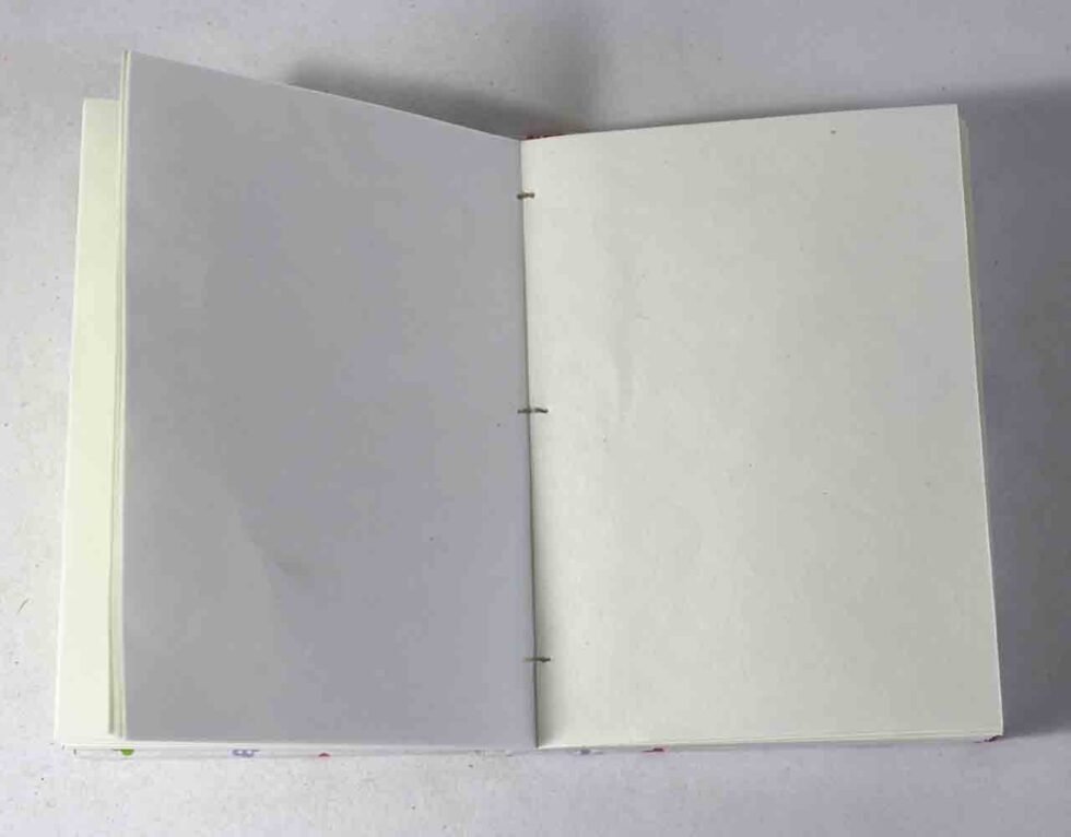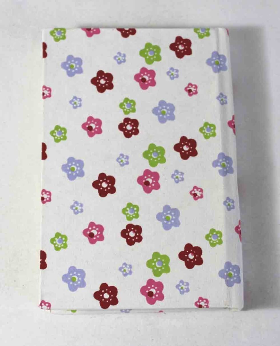 Handmade hand crafted notebook by premium artisans. Exclusive job work done on recycled handmade paper as cover. Inside, 48 sheets / 96 pages of cream colour smooth paper. Lovely paper to write upon, totally wood free, acid free and never bleeds even when written upon by an ink / fountain pen. A beautiful hand crafted notebook with multiple prints / job works on cover paper to make it a beautiful present for many occasions.