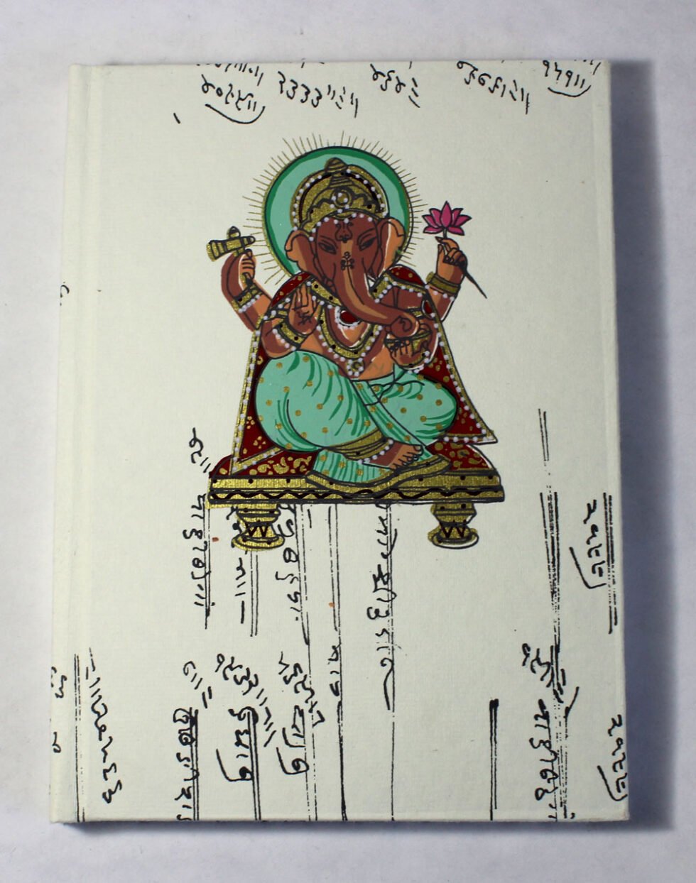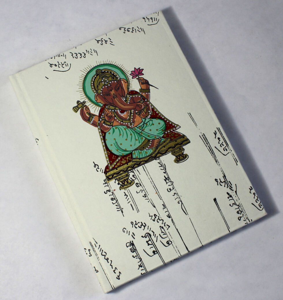 Antique-style A5 notebook with ‘Bahi-Khata’ script, hand-printed Ganesh on the cover, and elephant on the back. Contains 48 sheets (96 pages) of smooth, wood-free, acid-free paper. A symbolic and beautiful Diwali gift.