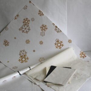 White stripes printed on 100 GSMÂ handmade recycled cotton purple paper. Wood fee, acid free handmade paper. A premium gift wrap for all kind of occasions rolled up on a paper tube. Can be shipped flat also, double folded or just flat. Can be supported by other packing accessories like bags, boxes, tissue papers, tags & labels a wonderful packing range in environment friendly paper. Can definitely be customized in terms of sizes, color, logo & other details.