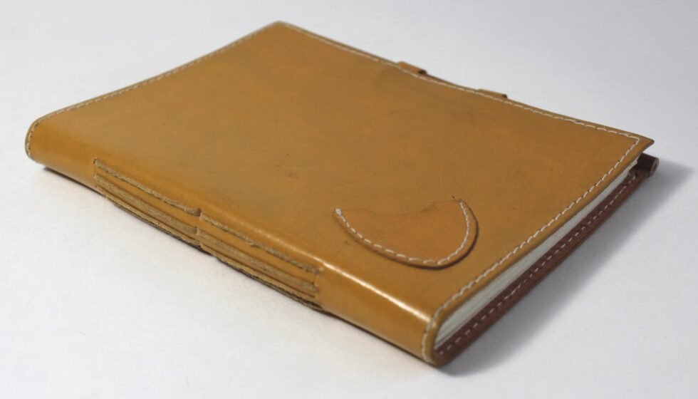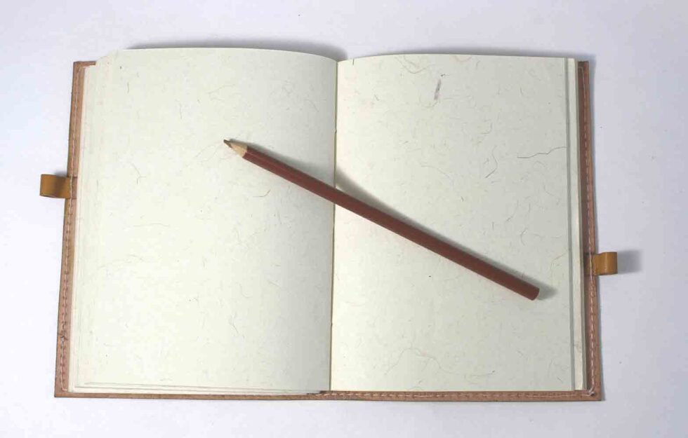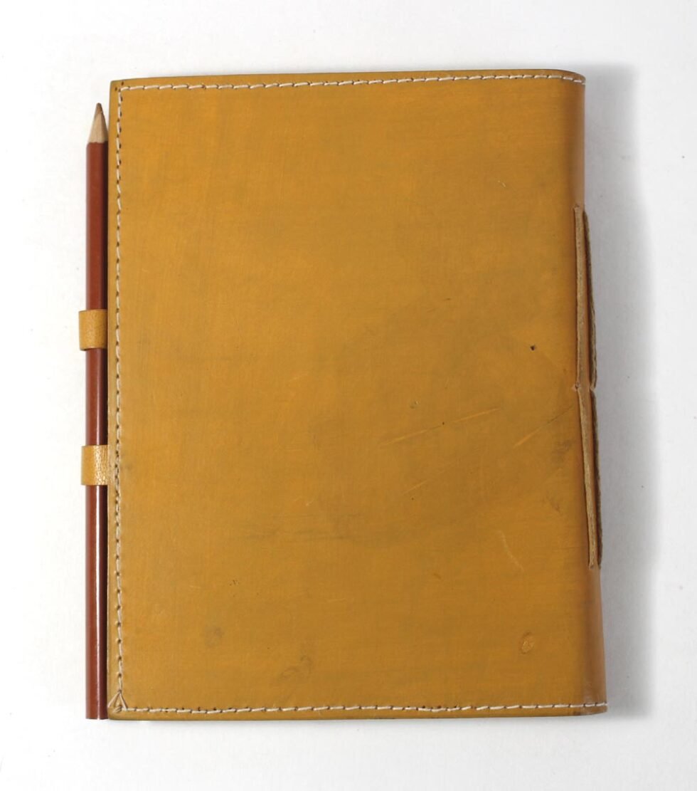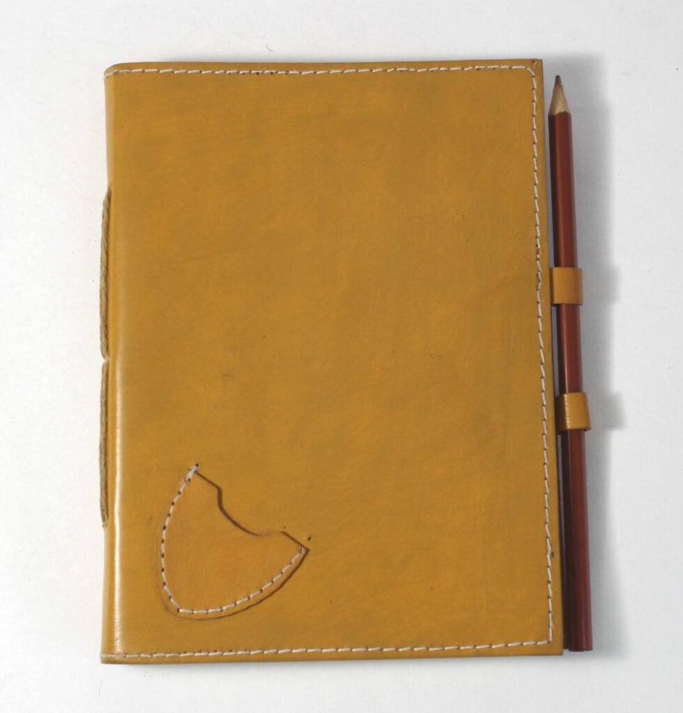 Ethnic style goat leather journal with 72 sheets / 144 pages of recycled cotton handmade paper. The gypsy looking journal matches with the travel theme and serves a good purpose while writing on a vacation or trip…capturing all your moods and feelings inside it. The paper is smooth, absolutely wood free, acid free and never bleeds even with ink pen.